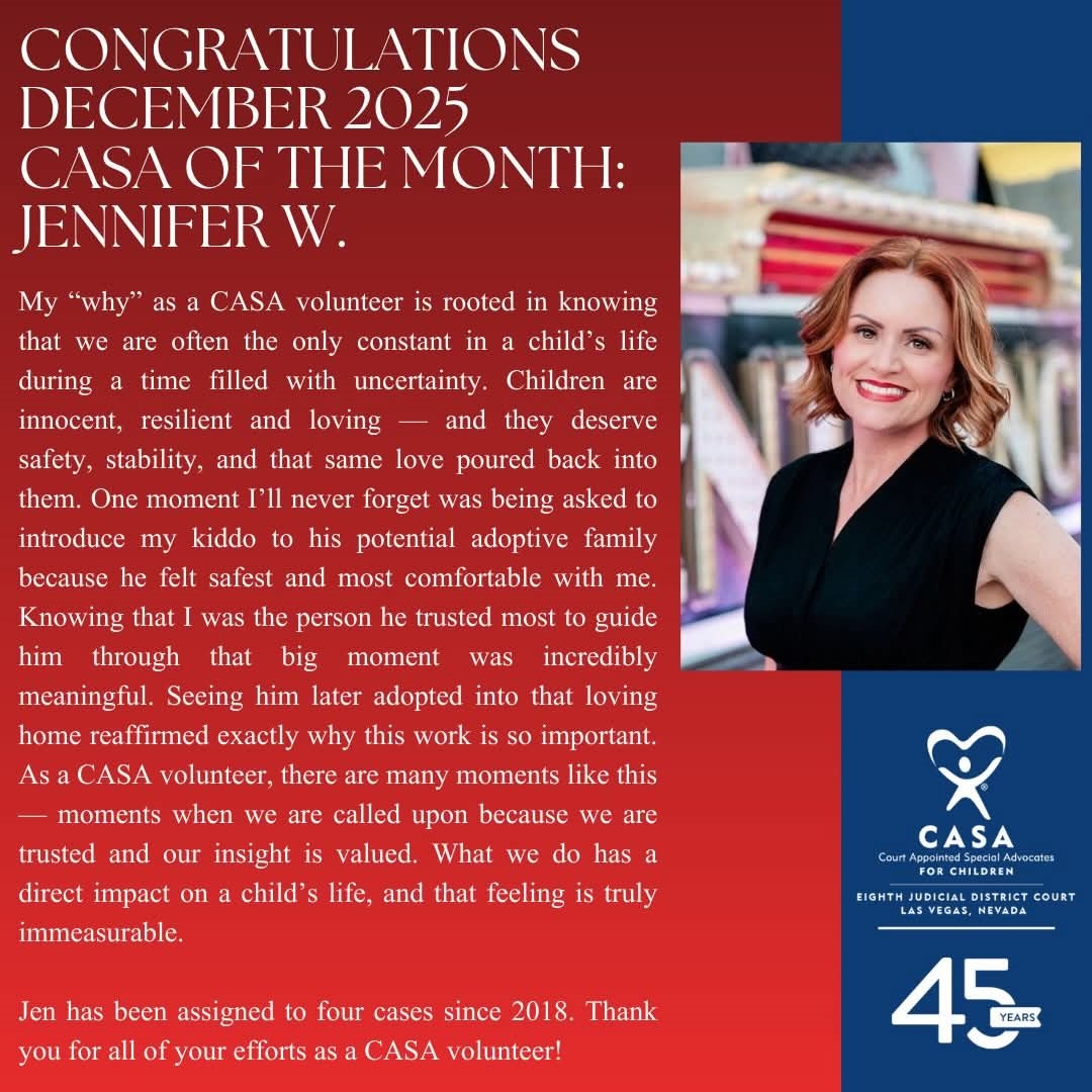 Stay up-to-date on what’s happening at CASA Las Vegas by clicking on the links below. Here’s where you will find the Judge’s Page, feature stories, CASA announcements and highlights from some of the events, attended by CASA volunteers and their kids, and more